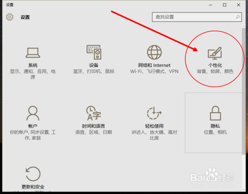 2:进入“设置”后,我们点击“个性化”选项(如下图)