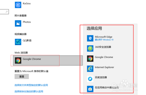 4:我就可以选择自己系统中安装的软件,选择自己的默认选择