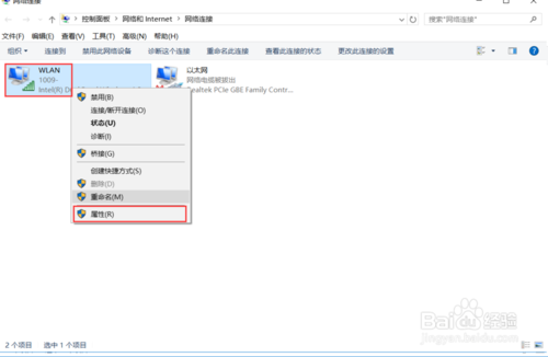 3:在弹出窗口中,右击wLAn图标,右键选择属性。