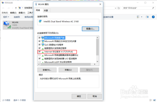 4:在弹出选项卡中,双击“internet协议版本4(TCP/iPv4)”。
