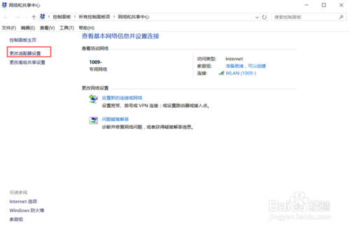 2:点击左侧菜单中的“更改适配器设置”选项。
