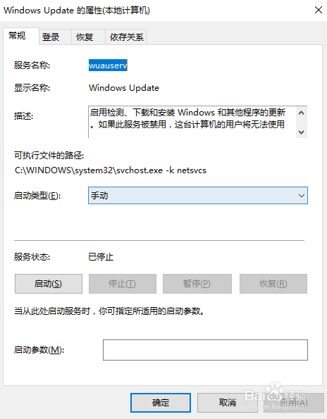 8:启动类型:选择【手动】,确定。