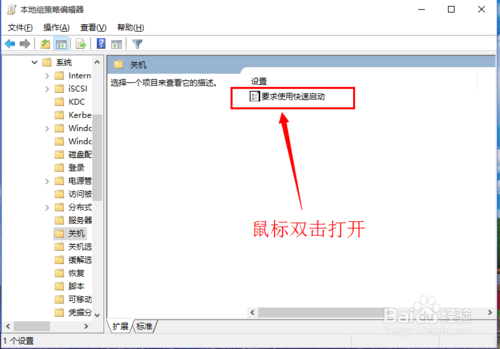 10:选择【关机】选项后,鼠标双击打开【要求使用快速启动】,如图所示。