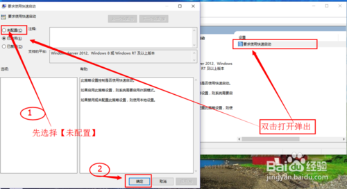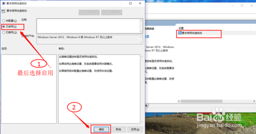 13:如上面的步骤依次打开【本地组策略编辑器】,将【要求使用快速启动】选项设置为已启用,点击保存。最后重启计算机即可实现快速启动。当然有的电脑可能还不能快速启动,(先将【启用快速启动】项前的勾去掉,重启计算机后,再将其前面的勾选上重启计算机就 oK 了!!!)