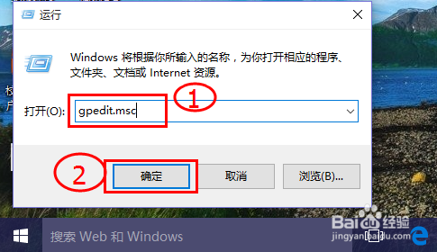 5:现在我们按下【windows+r】(如图所示键盘)启动运行,输入 gpedit.msc 后回车,如图所示。