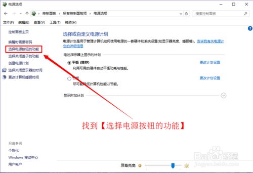 3:在左侧找到【选择电源按钮的功能】,如图所示。