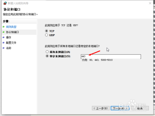 8:这里就可以选择协议类型TCP或UdP,以及需要筛选的端口