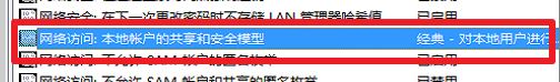 8、在右侧找到并双击打开 本地帐户的共享和安全模型,在弹出的框中选择 经典模式 点击确定 保存;