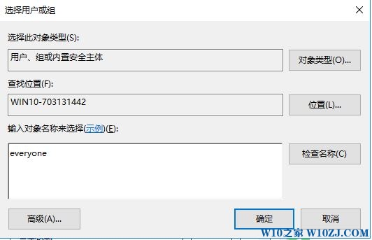 18、点击“添加”按钮,然后在对象名称中输入“everyone” 点击确定;