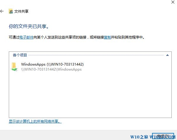 16、在弹出的你的文件夹已共享界面 点击【完成】;