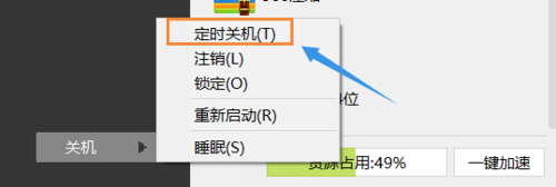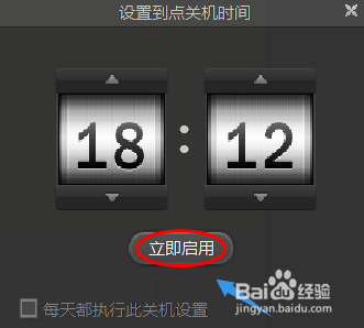 5:在关机选项的右侧三角形下拉菜单里,点击以后会看到"定时关机",如图;我们调整好时间然后"立即启用"即可;