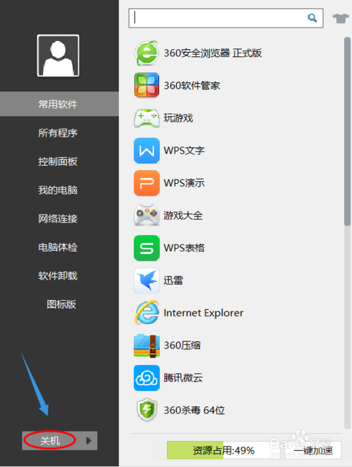 4:②点击该图标,然后会弹出另外一个窗口,左下角有"关机"选项;