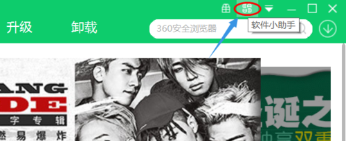 ①现在很多第三方软件都带有自动关机功能,我们最常用的360软件管家同样如此,下面是软件管家首界面,右上角有一个软件小助手图标,如下图;