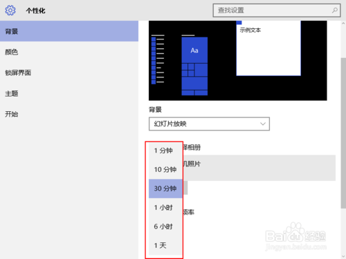 9:之后再调节一下幻灯片出现的频率,我们就拥有一个可以变换背景的桌面了。