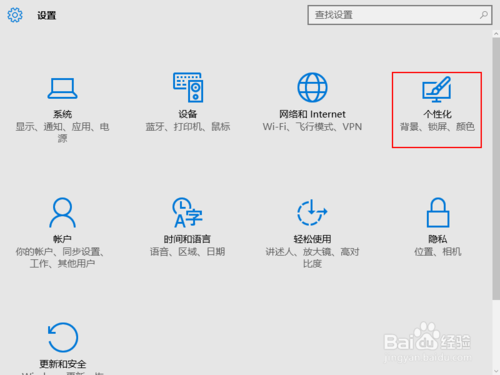 3:在设置中,找到个性化并单击,也可以打开个性化窗口。
