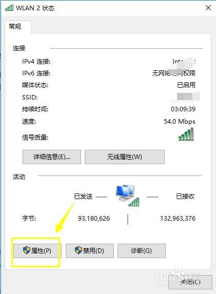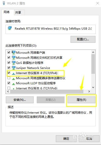 6:进入网络属性,选择ipv4协议,点击下方的属性按钮进入,如下图所示
