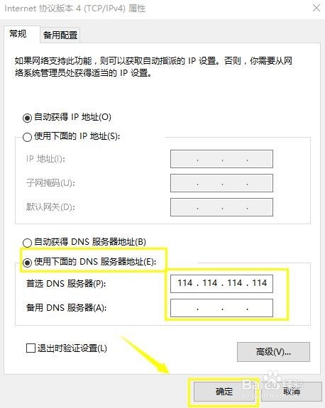 8:我们选择使用下列dns服务器,输入你要的地址,点击确定就可以成功设置dns了,如下图所示