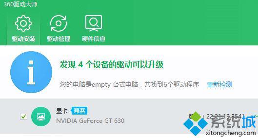 2、打开驱动管理软件之后,会开始检测我们电脑中硬件的驱动是否正常,检测完成后若显卡驱动未安装会提示我们下载安装,点击后面的【安装】即可开始下载安装;