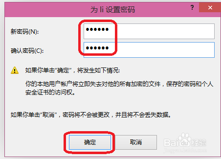 5:5、这里就输入要为li设置的密码,设置好后单击”确定“。