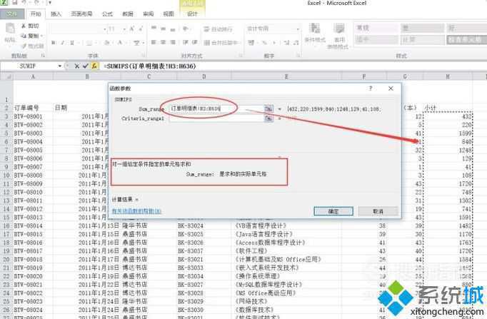 10、单击确定按钮,得出总销售额。要注意列表名称的选择,必要时可以直接框选数据范围而不必选择要查找的列表名。