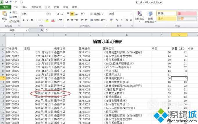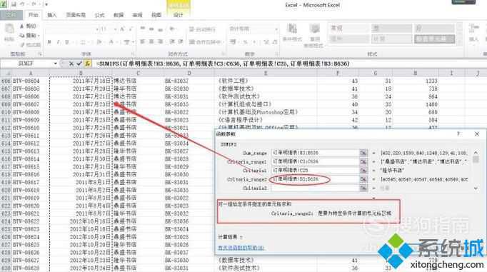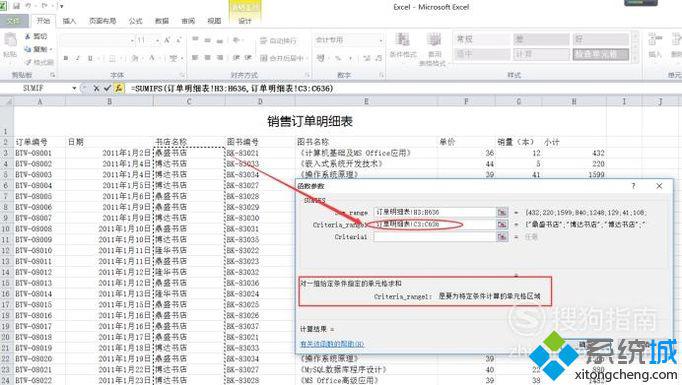 2、为求隆华书店在2011年第3季度(7月1日~9月30日)的总销售额,需要利用sUMiFs函数对订单明细表中列出的全年的隆华书店销售额进行条件筛选。