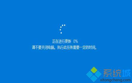 6、然后会提示正在进行更新 请不要关闭电脑。执行此任务需要一定的时间。 额,和平时安装升级补丁很像;