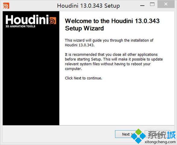 1、找到houdini的安装程序文件,双击该程序文件弹出欢迎安装操作界面,在该界面找到next选项,如图所示: