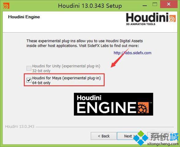 4、点击next在弹出的界面内勾选houdini for Maya选项,再找到next选项,如图所示: