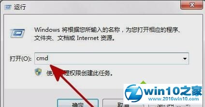 1.敲击键盘“win+R”,打开运行,再输入cmd,点确定;