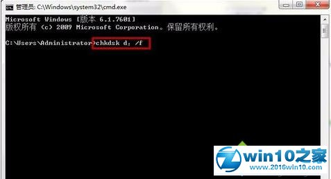 2.打开之后,输入“chkdsk:/f”,然后敲击键盘的回车键即可成功清理回收站。