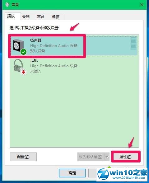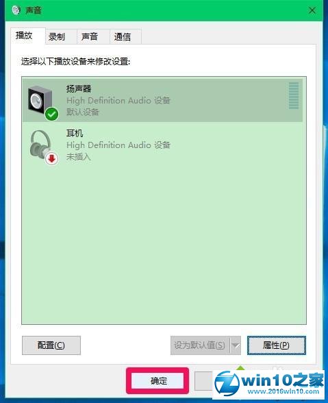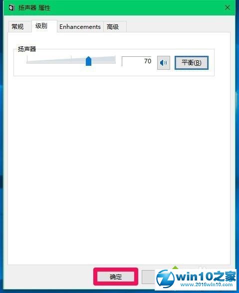 10、回到扬声器 属性窗口,点击:确定,再回到声音窗口,也点击:确定,至此设置完成。