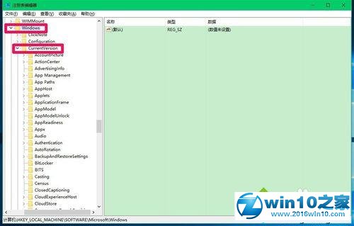 3、在Microsoft的展开项再继续展开windows\CurrentVersion;
