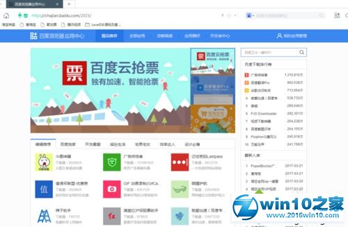 3、如图所示,弹出了百度浏览器应用中心页面。