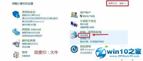 2、控制面板的时钟语言和区域中我们点击添加语言打开。
