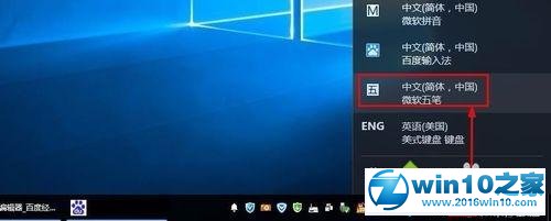6、这时候我们点击任务栏右下角的输入法按钮就可以看到我们添加的五笔输入法。