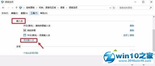 4、语言选项界面,我们输入法这里选择添加输入法选项。