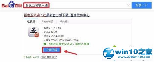 1、安装其它类型的五笔输入法也比较简单,我们可以百度搜索自己需要的五笔输入法下载到自己电脑。比如要安装百度五笔输入法,我们搜索下载到电脑。