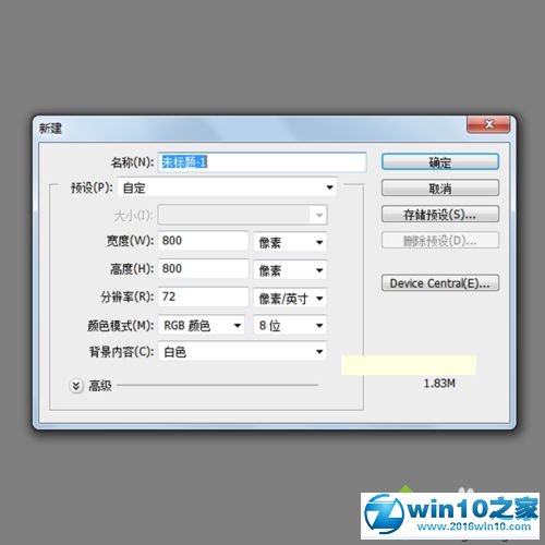 1、首先启动photoshop cs5,执行文件-新建命令,新建一个大小为800*800,背景为白色,分辨率为72的文档。