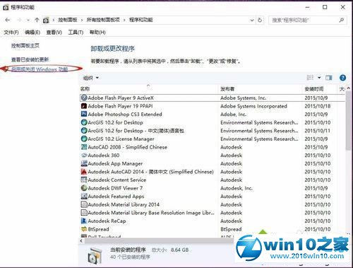 2、打开程序与功能,找到启用或关闭windows功能,打开。