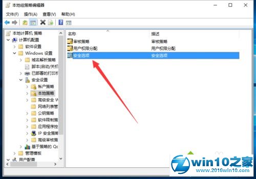 5、在本地策略选项的右侧窗格中,找到“安全选项”选项并双击鼠标左键将其打开。
