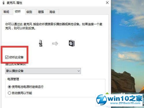 5、转到第二个标签页“侦听”,会看到“侦听此设备”前面打勾了,把这个勾给去掉。