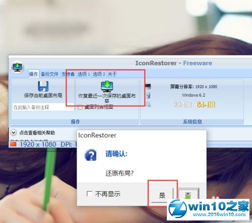 4、点击软件界面中的“恢复最近一次保存的桌面布局”按钮,就可以保存最近一次的桌面布局方案,当我们发现桌面图标错乱之后,点击该按钮即可轻松恢复,小伙伴们赶紧试试吧。