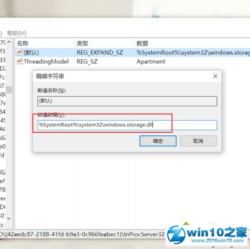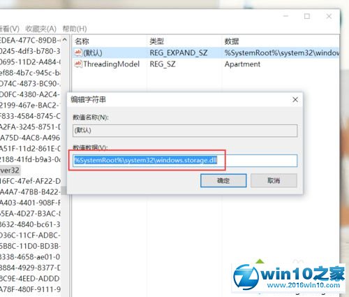 4、接下来,我们将其键值修改为”%systemRoot%\system32\windows.storage.dll“,然后点击确定按钮,保存对注册表编辑器的修改。