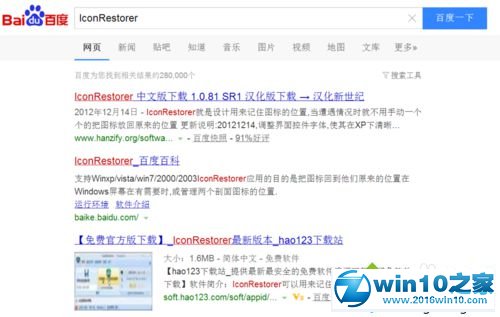 1、除了对系统注册表进行修改以外,我们还可以利用第三方软件来恢复桌面图标布局,这里大家可以百度一下“iconRestorer”软件。