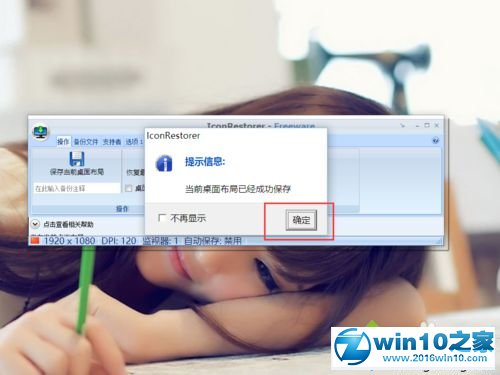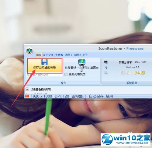 3、点击软件主页面中的“保存当前桌面布局”按钮,就可以将当前使用的桌面布局保存到软件中,以便为了日后恢复桌面图标布局。