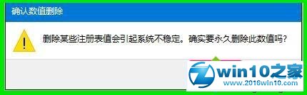 8、此时会弹出一个确认数值删除的对话框:删除某些注册表值会引起系统不稳定。确实要永久删除此值吗?点击:是(Y),删除noViewContextMenu以后,退出注册表编辑器。