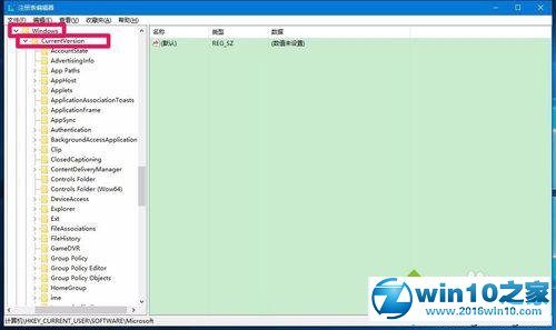 5、在Microsoft的展开项中找到windows,并展开windows\CurrentVersion;