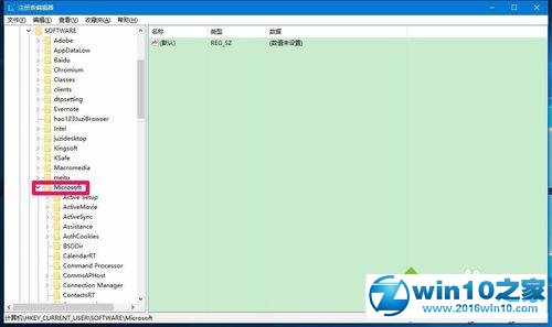 4、在software的展开项中找到Microsoft,再展开Microsoft;