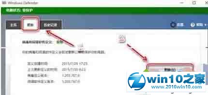 2、打开windowsdefender界面后,选择【更新】---【更新】;