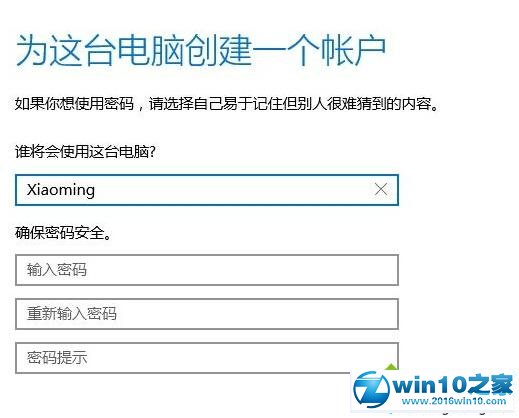 6、接下来输入你要创建的本地帐户名,然后点下一步;